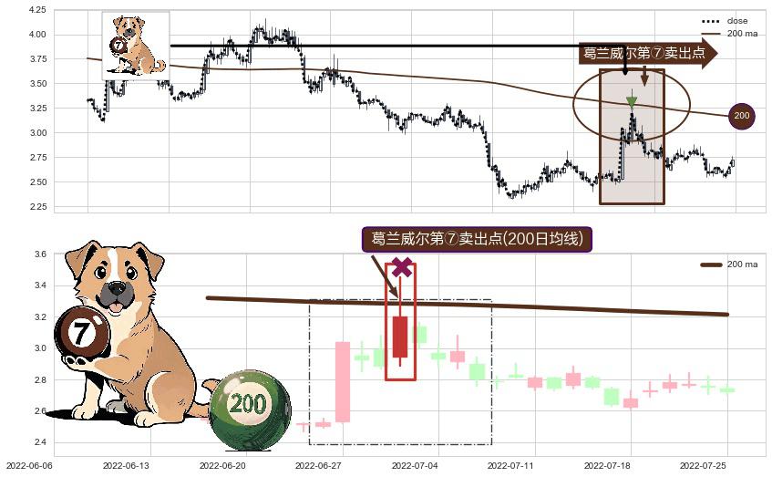 ⚀ 2022-06-30-日显现 葛兰威尔均线 200日均线 第⑦卖出点 下降趋势的中继信号,后市看跌,卖出信号