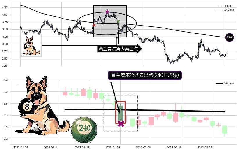 ⚀ 2022-01-25-日显现 葛兰威尔均线 240日均线 第⑧卖出点 下降趋势的中继信号,后市看跌,卖出信号