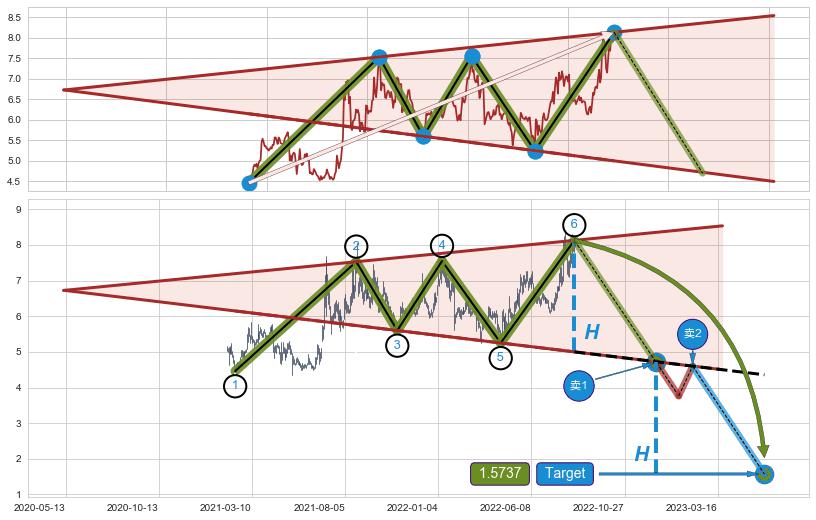 ➣ 【仅预测突破】最后价格:8.13与预测突破价格:4.70→【空间较大】后续最小【反转】第一目标价格→(2023-05-25: 1.5737 )