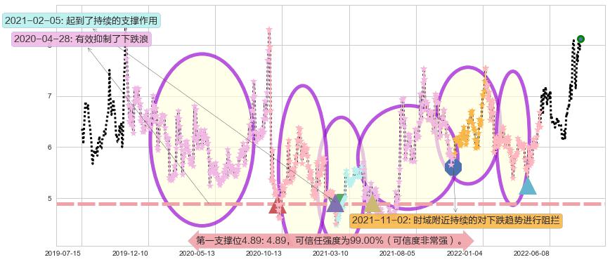 ♞ 第一支撑位4.89价格为4.89,其通过量化计算出的可信任强度为99.00%(可信度非常强)。