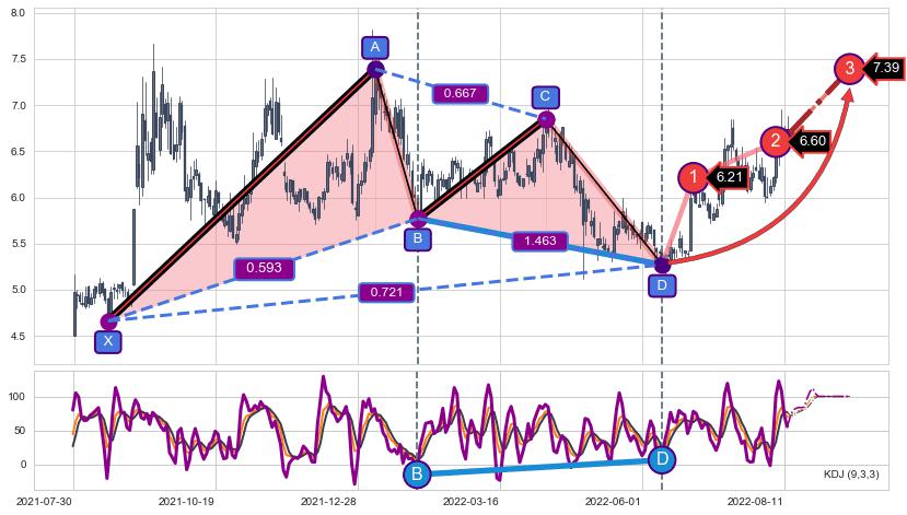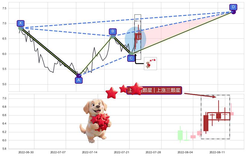 ➣ D点拟合预测价格7.38,距离最后交易收盘价格6.67相差 +10.67%