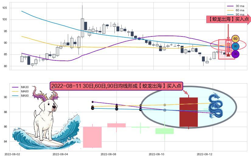 ⚀ 2022-08-11日显现 30日-60日-90日均线 【蛟龙出海】买入点 看多信号,后市看涨,买入