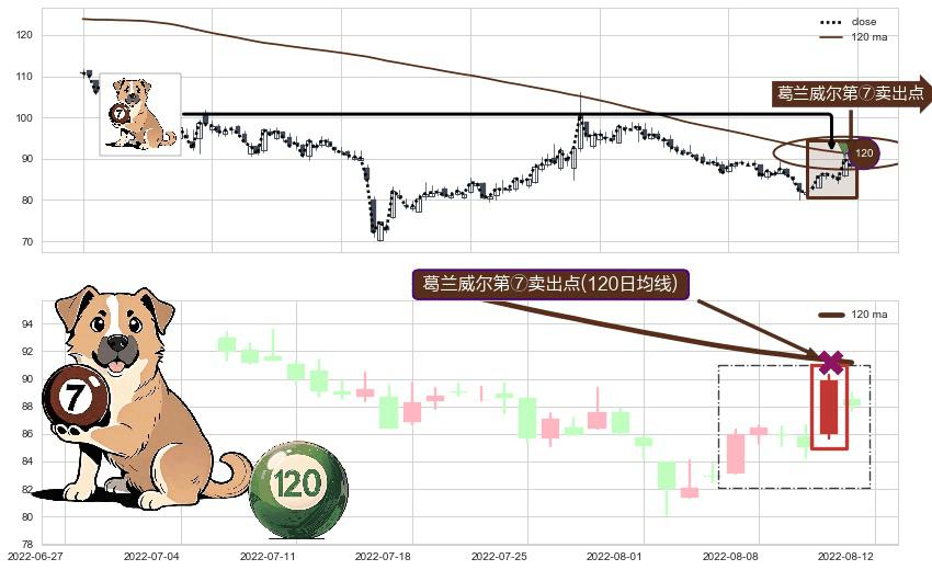 ⚀ 2022-08-11-日显现 葛兰威尔均线 120日均线 第⑦卖出点 下降趋势的中继信号,后市看跌,卖出信号