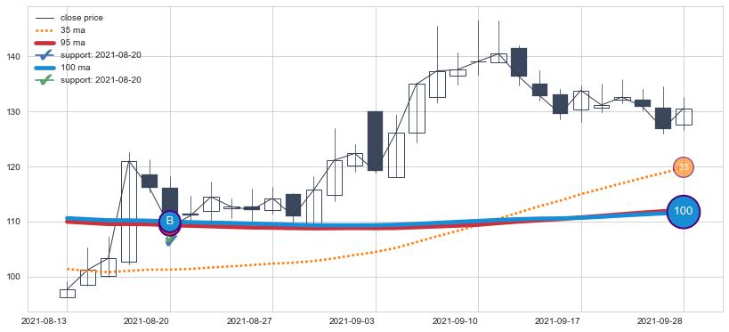 ⚄ 价格在均线遇到阻力后再次向下回落了【极短】距离, 第⑦卖出点 阻力效果【等待验证】