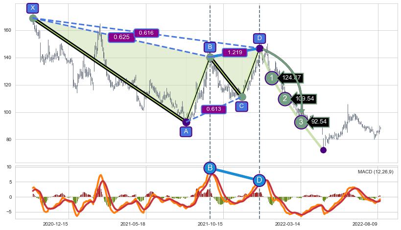 ➢ 谐波价格D点比B点高 ⤴,【MACD】指标D点比B点低 ⤵️