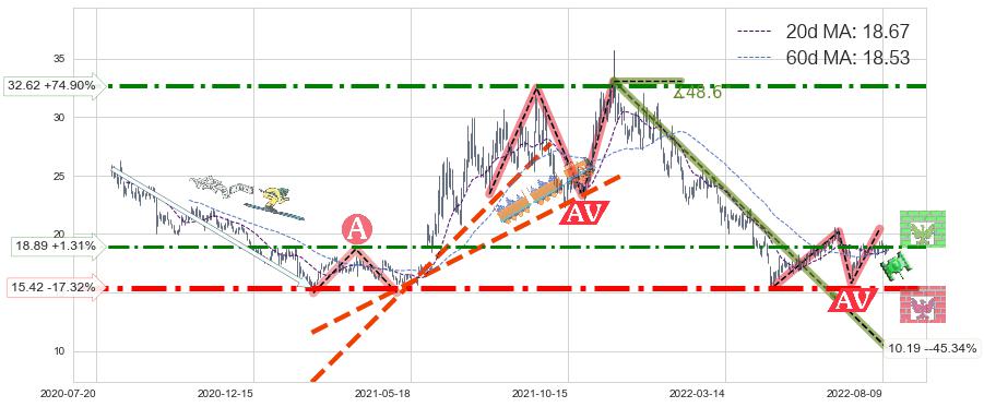 ➣ 【仅预测突破】最后价格:18.65与预测突破价格:18.00→【空间中等】后续最小【反转】第一目标价格→(2022-10-28: 6.92 )