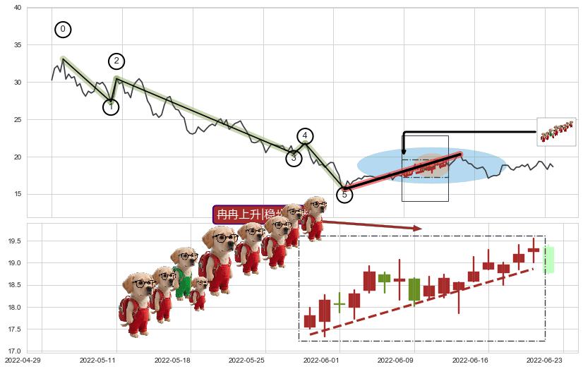 ➢ 收盘价(2022-05-24: 16.90 )→回踩→第一根k线高点(2022-05-19: 17.05 )