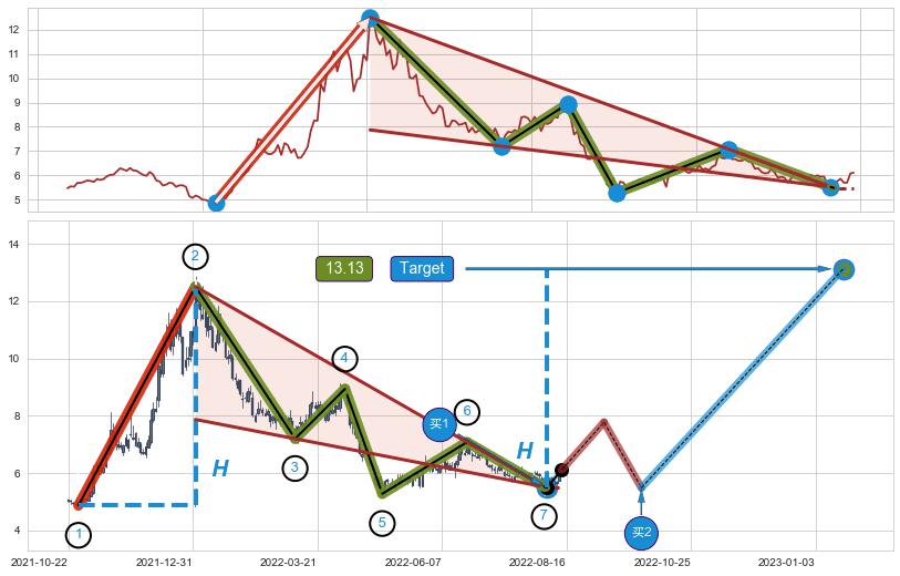 ➣ AI预测: 假定反转启动后, 第❶目标位置(2022-12-21, 7.30)