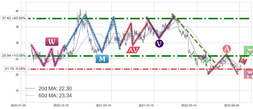 ♘ 阻力价格位25.94,可信任强度88.64%,距离最后交易2022-08-12形成的收盘价格22.95相差 +13.05%