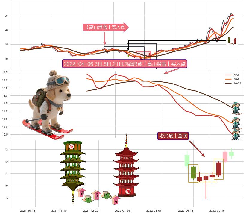 | 2 🅚:徐缓上升 ➕ 🎢:【高山滑雪】买入点均线组合买入点信号形成后,猜想后续下行结束,持续反弹上涨(均值回复) ☞ 看多信号 ⇥ 【均线】交织【🅚线】⇥ 综合量化分数: 52 | > |