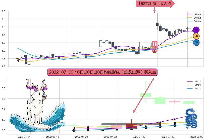 ⚀ 2022-07-25日显现 10日-20日-30日均线 【蛟龙出海】买入点 看多信号,后市看涨,买入