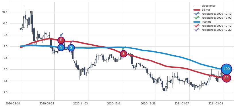 ➢ 最优均线组合共正确确认支撑阻力信号7处,正确确认率 87.50%