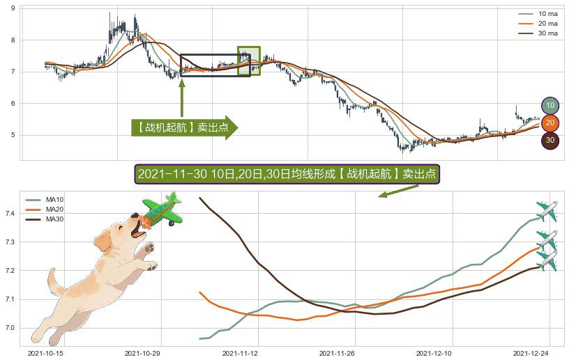 ⚀ 2021-11-04日-2021-12-23日显现 10日-20日-30日均线 【战机起航】卖出点 看空信号,后市看跌,卖出