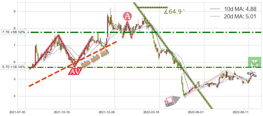 ➣ AI预测: 假定反转如期而至,第❷价格目标位置(2022-08-19, 5.22)