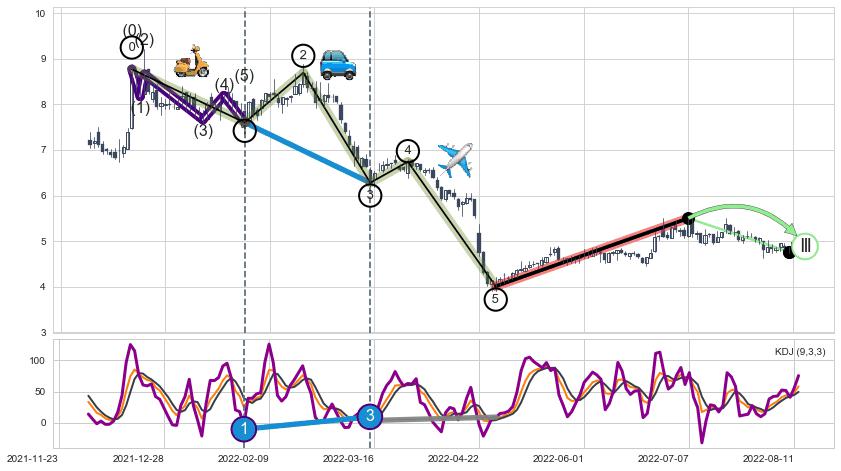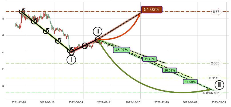 ➣ AI预测: 假定反转启动后, 第❸目标位置(2022-11-23, 5.50)