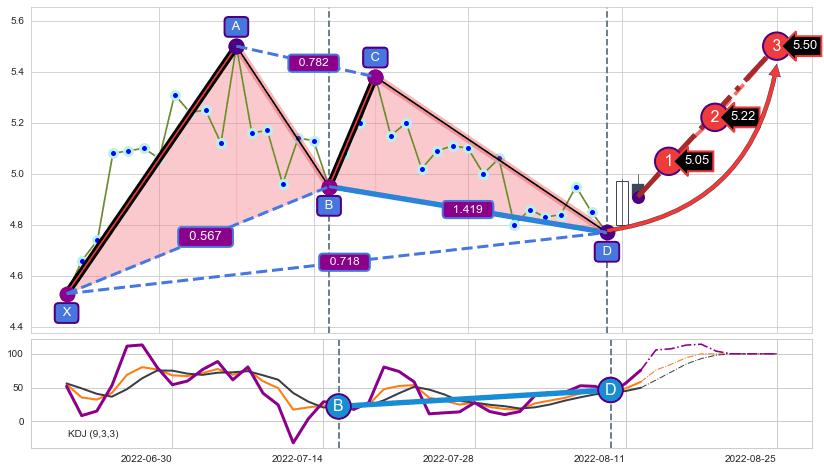 ➢ AI预测: 假定反转如期而至,第❸价格目标位置(2022-08-25, 5.50)