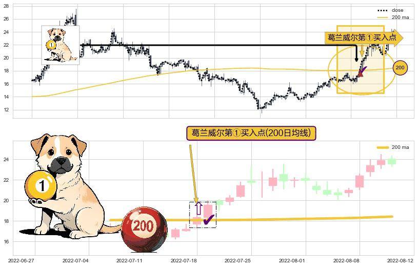 ⚀ 2022-07-18-日显现 葛兰威尔均线 200日均线 第买①入点 走势反转见底信号,后市看涨,买进信号
