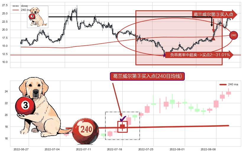 ⚀ 2022-07-18-日显现 葛兰威尔均线 240日均线 第③买入点 上升趋势的中继信号,后市看涨,买进信号