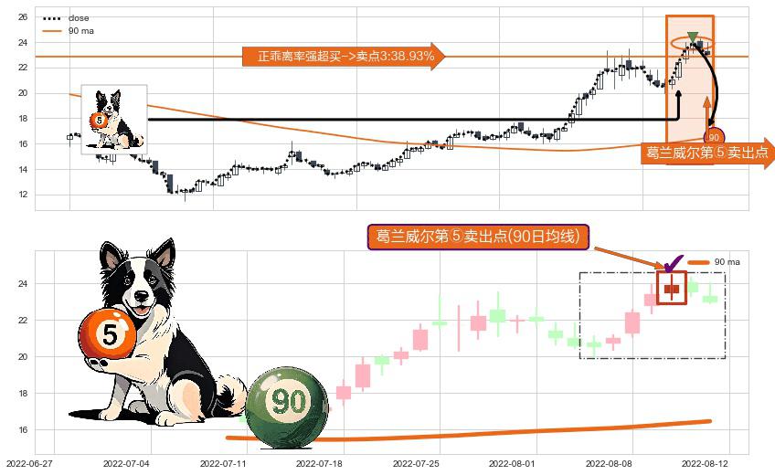 ⚀ 2022-08-10-日显现 葛兰威尔均线 90日均线 第⑤卖出点 上升趋势均值回复的短线回落信号,后市看跌,卖出信号
