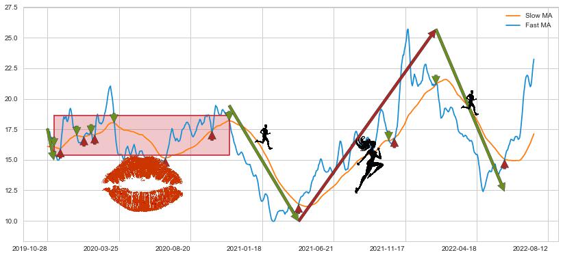 2022-01-18至2022-06-16 慢线与快线呈空头排列, 慢线与快线接触少,无缠绕