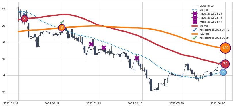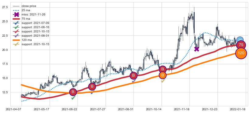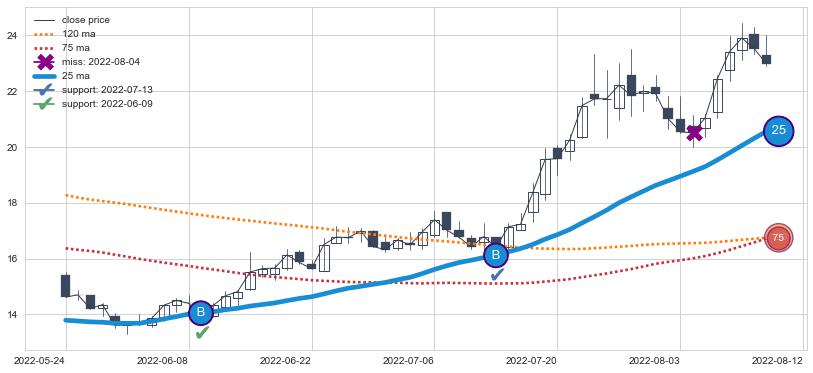 ⚂ 2022-03-08-日均线向下破位,2022-07-18-日重新上穿突破均线,均线支撑再次生效