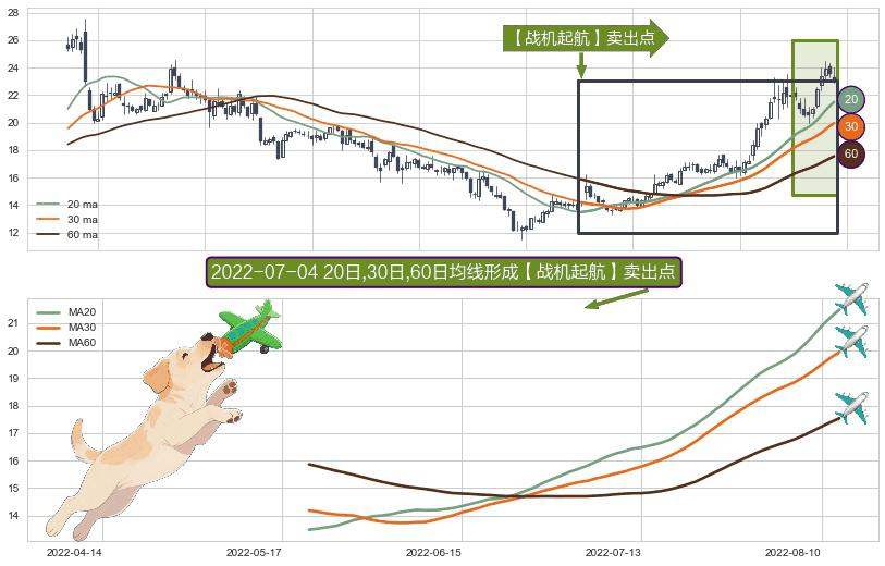 ⚀ 2022-05-20日-2022-08-12日显现 20日-30日-60日均线 【战机起航】卖出点 看空信号,后市看跌,卖出