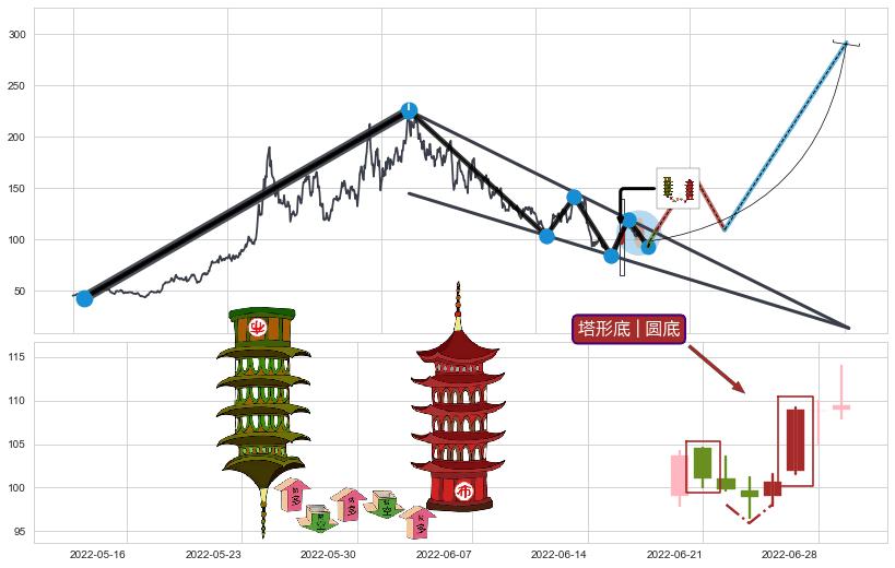 | 3 🅚:降势受阻 ➕ 📐:降楔型猜想突破点临近,临近关键阻力位,预期拉升突破上涨 ☞ 看多信号 ⇥ 【🅚线】交织【图形】⇥ 综合量化分数: 55 | > |
