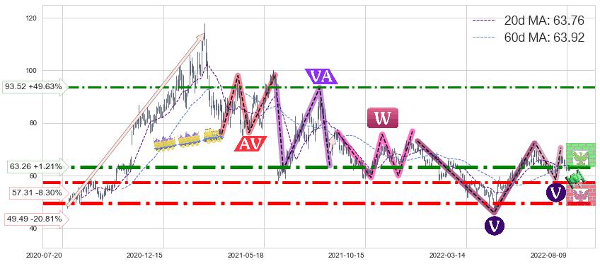 ♘ 阻力价格位63.26,可信任强度86.13%,距离最后交易2022-08-12形成的收盘价格62.50相差 +1.21%