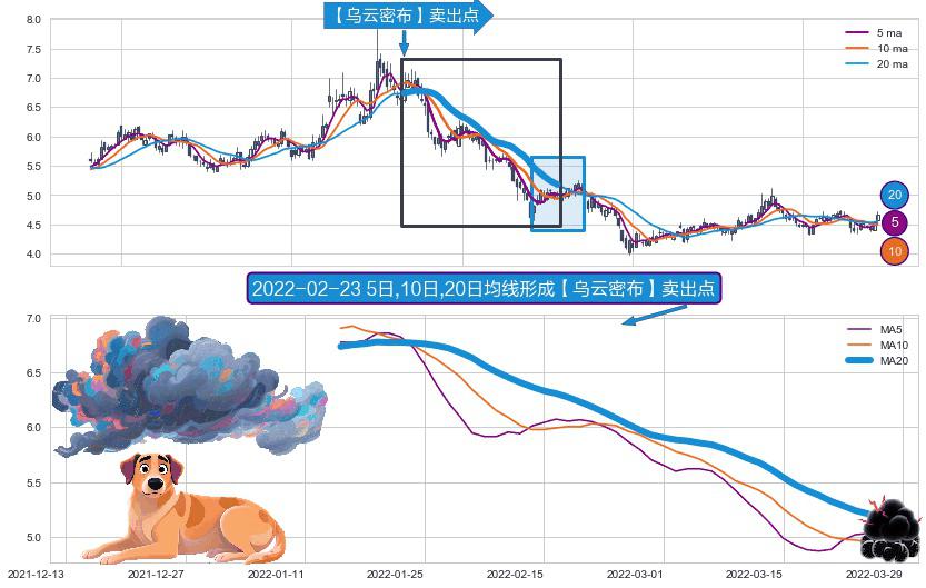 形态多维评估: ⚀ 2022-01-14日-2022-03-25日显现 5日-10日-20日均线 【乌云密布】卖出点 看空信号,后市看跌,卖出