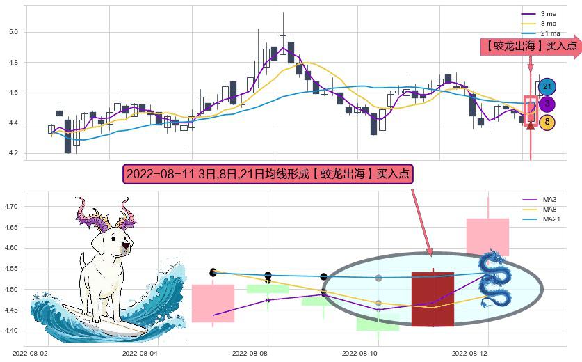 形态多维评估: ⚀ 2022-08-11日显现 3日-8日-21日均线 【蛟龙出海】买入点 看多信号,后市看涨,买入