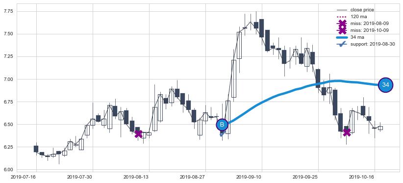 上涨趋势2019-07-16-2019-10-17,均线34确认关键支撑1处