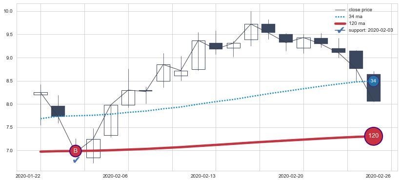 上涨趋势2020-01-22-2020-02-26,均线120确认关键支撑1处