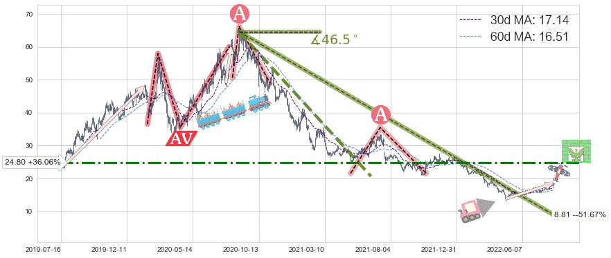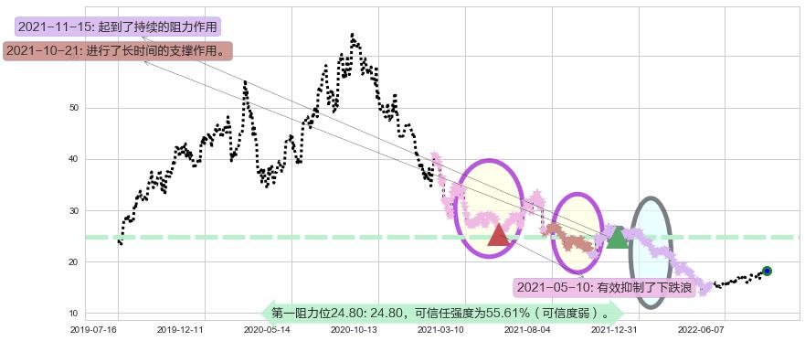 ♘ 阻力价格位24.80,可信任强度55.61%,距离最后交易2022-08-12形成的收盘价格18.23相差 +36.06%