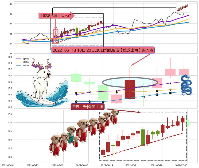 | 3 🅚:早晨之星(黎明之星) ➕ 🎢:【蛟龙出海】买入点均线组合买入点信号形成后,猜想后续阻力突破,后市持续上涨 ☞ 看多信号 ⇥ 【均线】交织【🅚线】⇥ 综合量化分数: 52 | > |