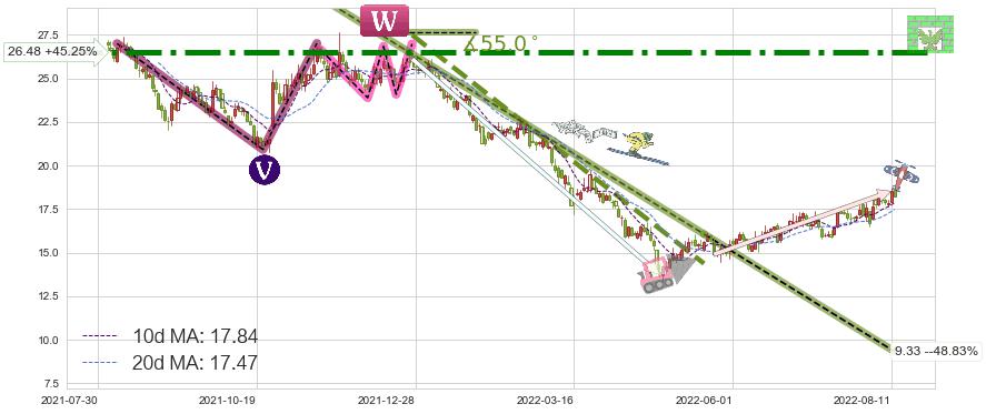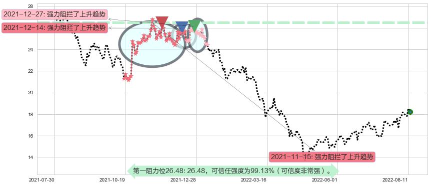 ♘ 阻力价格位26.48,可信任强度99.13%,距离最后交易2022-08-12形成的收盘价格18.23相差 +45.25%