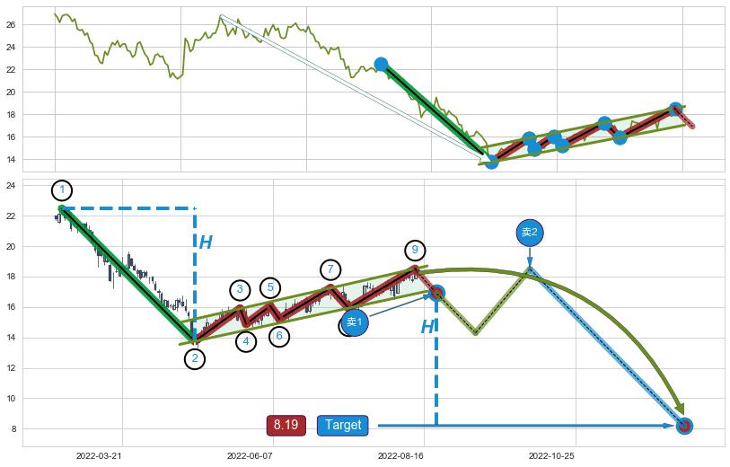 ➣ 最小中继整理跌幅→𝐇: 8.72 (𝐇旗杆的长度:旗杆起点→顶点)