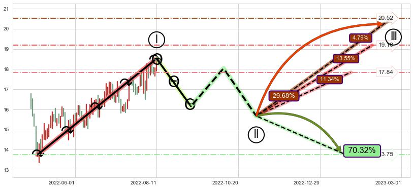 ➢ 【仅预测突破】最后价格:18.23与预测突破价格:16.91→【空间较大】后续最小【整理】第一目标价格→(2022-12-14: 8.19 )