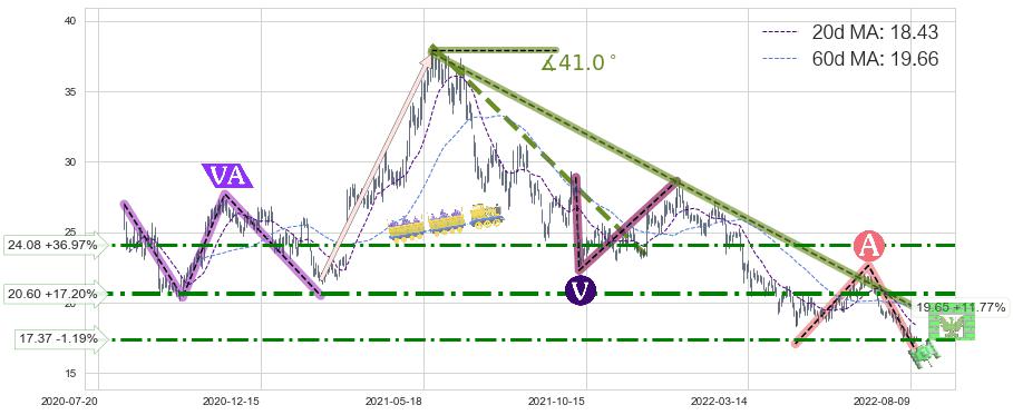 ♘ 阻力价格位24.08,可信任强度68.98%,距离最后交易2022-08-12形成的收盘价格17.58相差 +36.97%