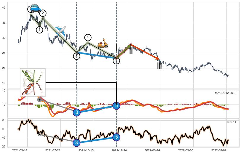 ➣ 循环浪继续向下【平均值】位置(2022-12-12, 14.04),匹配聚类样本比例53.54%, 可能性概率25.45%