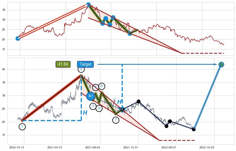 ➢ 最小中继整理涨幅→𝐇: 17.19 (𝐇楔型旗杆的长度:楔型起点→顶点)