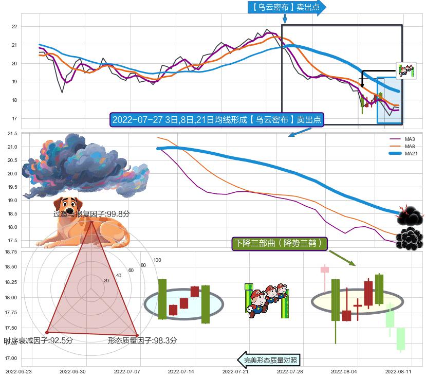 | 2 🅚:黄昏之星(夜星) ➕ 🎢:【乌云密布】卖出点均线组合卖出点信号形成后,猜想后续下行持续,下跌加速(趋势跟踪) ☞ 看空信号 ⇥ 【均线】交织【🅚线】⇥ 综合量化分数: 43 | > |