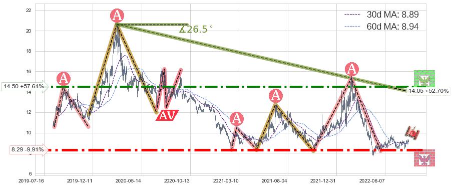 ♞ 30日均线:8.89,60日均线:8.94→ 快线<慢线