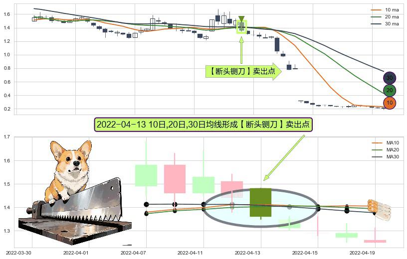 形态多维评估: ⚀ 2022-04-13日显现 10日-20日-30日均线 【断头铡刀】卖出点 看空信号,后市看跌,卖出