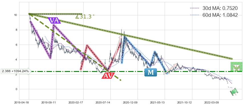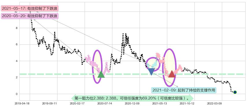 ♘ 阻力价格位2.388,可信任强度69.20%,距离最后交易2022-06-21形成的收盘价格0.200000相差 +1094.24%