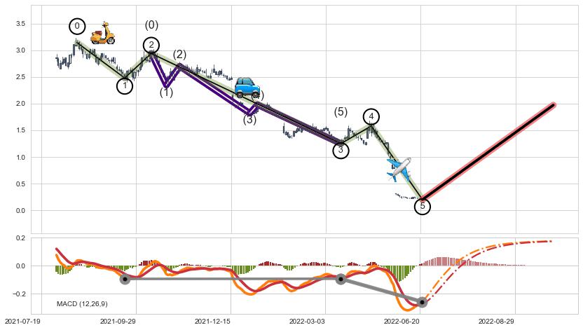 ➢ 循环浪继续向下【最高】位置(2023-05-08, 0.220682),匹配聚类样本比例23.54%, 可能性概率11.46%