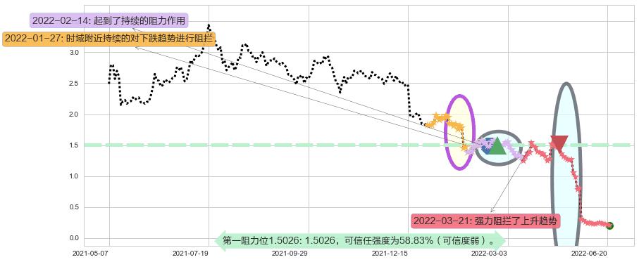 ♘ 阻力价格位1.5026,可信任强度58.83%,距离最后交易2022-06-21形成的收盘价格0.200000相差 +651.29%