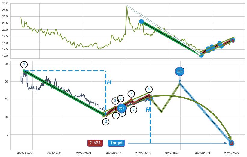 ➢ 【仅预测突破】最后价格:15.67与预测突破价格:15.28→【空间临近】后续最小【整理】第一目标价格→(2023-02-22: 2.564 )