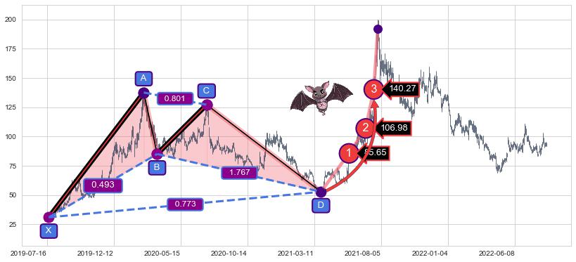 ➣ 已达成看涨【蝙蝠】形态全部的预期目标
