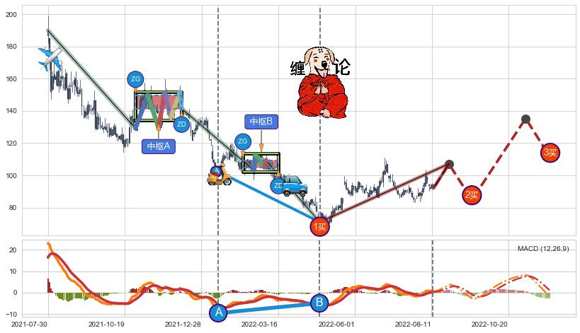 ➣ 【已完成】缠论 起点:2021-07-30,完成第1中枢A,完成第2中枢B,终点:2022-04-26,缠论共252交易日