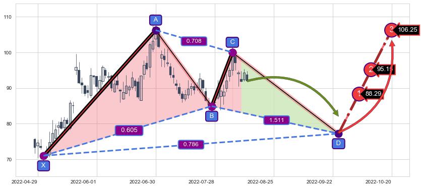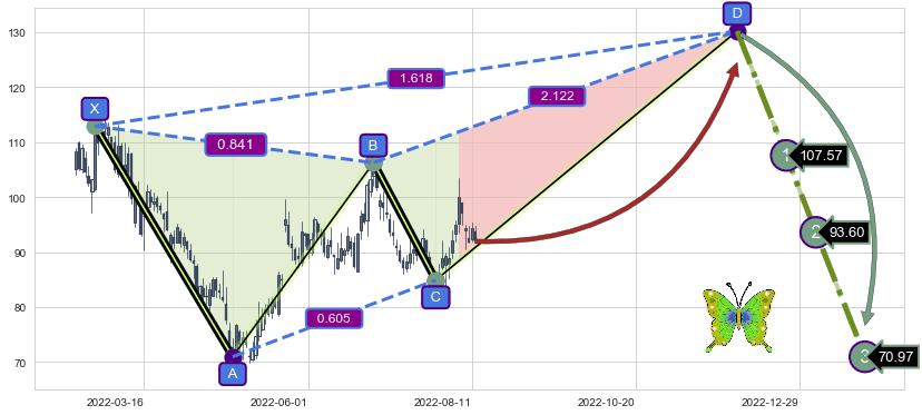 ➣ 未完成【蝴蝶】形态起点X: 2022-02-23, 已到达C点: 2022-07-27, 预测最终D点: 2022-12-02, 共192交易日